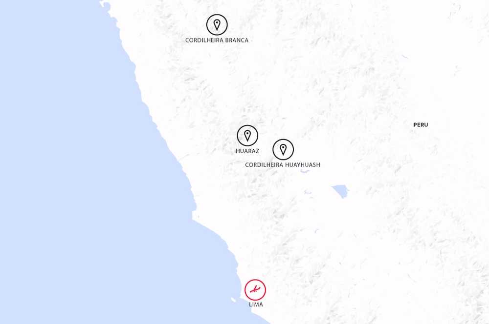 NO CORAÇÃO DO PERU, ENTRE VALES ISOLADOS E GIGANTES DE NEVE ETERNA, ERGUEM-SE AS CORDILHEIRAS BRANCA E HUAYHUASH — PALCO DE UMA DAS MAIS BELAS TRAVESSIAS DE ALTITUDE DO MUNDO. AO LONGO DESTE TREKKING, CRUZAMOS PASSOS ACIMA DOS 4.700 METROS, ACAMPAMOS JUNTO A LAGUNAS GLACIARES E PERCORREMOS TRILHOS QUE NOS CONDUZEM AO MÍTICO CAMPO BASE DO SIULA GRANDE, CENÁRIO DA LENDÁRIA AVENTURA DESCRITA EM TOUCHING THE VOID.