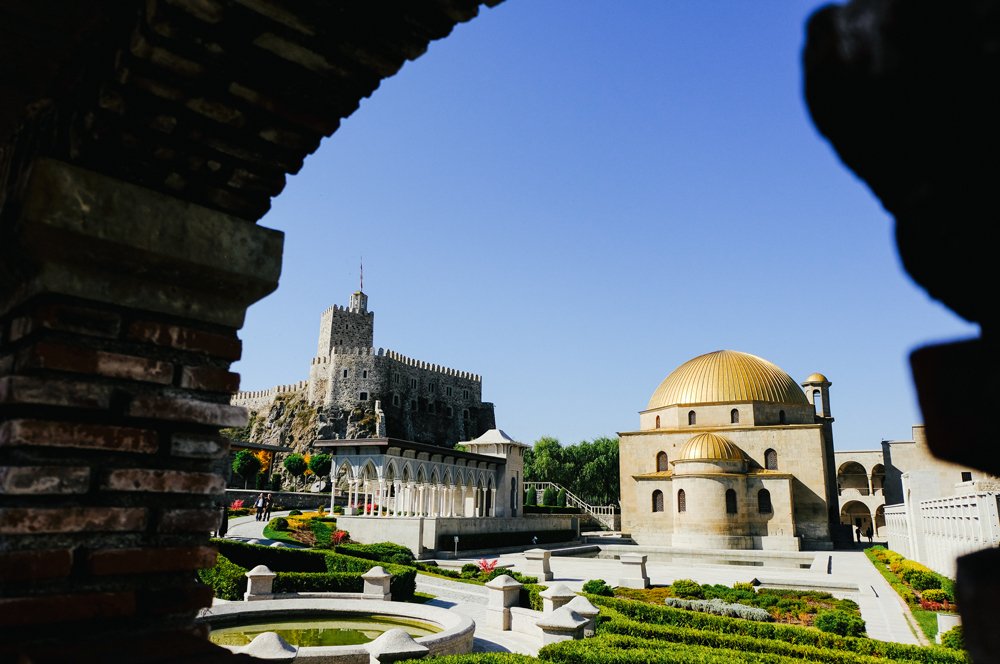 Cedo pela manhã, partimos rumo ao Grande Cáucaso, percorrendo a estrada militar da Geórgia que une o país à Rússia. De caminho, paramos no forte Ananuri, virado para a barragem azul turquesa Zhinvali. O nosso destino final é Gergeti, uma cidade de montanha famosa pela Igreja da Santa Trindade. A sua silhueta, no topo da colina, desenhada contra os picos cobertos de neve do monte Kazbegui, oferece-nos o postal ilustrado perfeito do país.