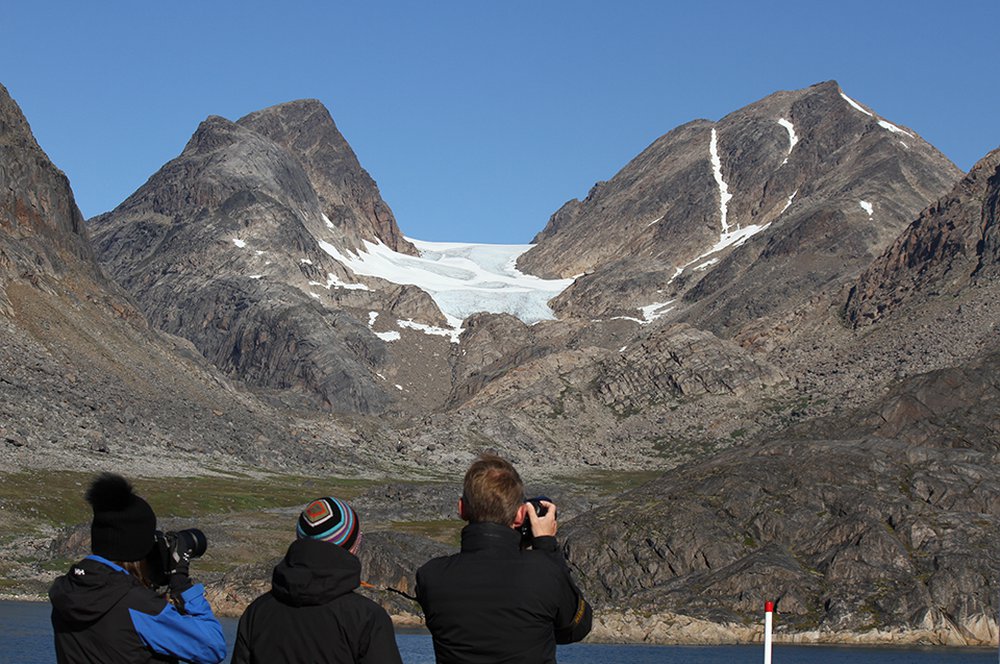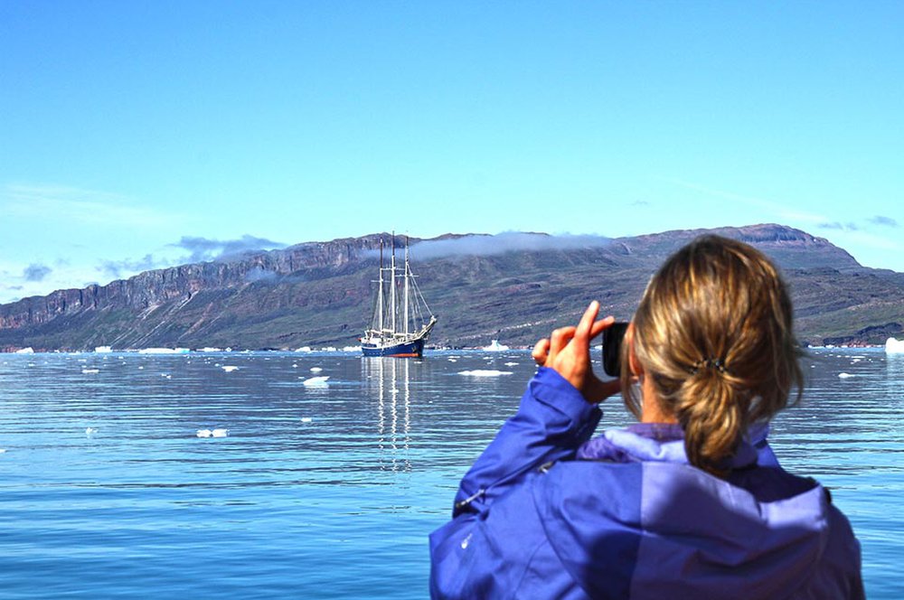 O dia é passado em navegação. Sem nunca nos afastarmos muito da costa, seguimos ao longo dos fiordes do sul da Gronelândia. O verde, que caracteriza estas terras do sul da ilha, contrasta com os territórios gelados que vamos encontrar mais a norte dentro de poucos dias. Aproveita o deque do navio para tentar observar baleias e focas, que passam frequentemente próximo das embarcações que aqui navegam. Ao longo do dia, o barco para em várias povoações, o que nos permite testemunhar o isolamento dos seus habitantes. Na Gronelândia não existem estradas a ligar as localidades. A via marítima é essencial - por vezes, é a única forma de ligar povoações.