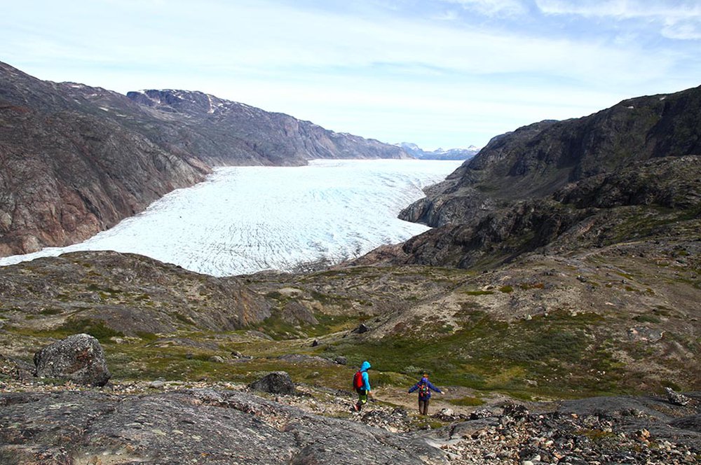 Após o pequeno-almoço, calçamos as botas de trekking e partimos para um trilho de um dia, que nos leva ao glaciar de Narsarsuaq, no manto de gelo da Gronelândia. Do topo, a paisagem gelada perde-se na linha do horizonte e transmite-nos uma sensação de imensidão. Regressamos a Narsarsuaq durante a tarde e jantamos no albergue.