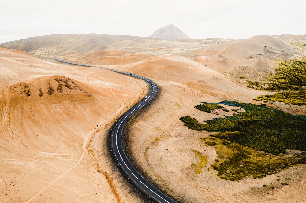 Horas depois, o deserto abre-se e a paisagem volta a mudar. Brota o verde, a água reaparece, e o cheiro a enxofre anuncia o norte. O dia termina junto ao Lago Mývatn, onde o calor do interior da Terra se sente novamente sob os pés.