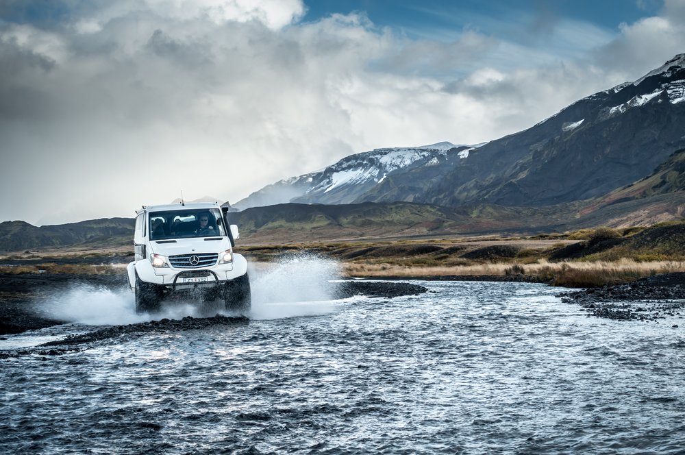 Grande parte da viagem será feita em transporte privado. Utilizaremos um superjeep que nos permitirá percorrer as estradas de gravilha que atravessam o interior da Islândia e os rios glaciares que a cruzam.