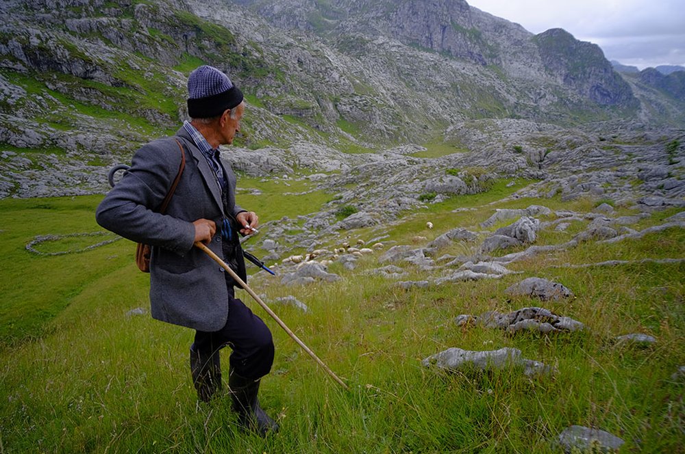 O dia começa sereno. Seguimos por um trilho bem marcado que cruza o feroz rio de Dobërdol. Pelo caminho, encontramos pastores e avistamos os rebanhos que pontuam os verdes prados alpinos. À medida que nos afastamos da povoação, os terrenos planos dão lugar a íngremes encostas. Sem pressa, avançamos em direção à cumeada.